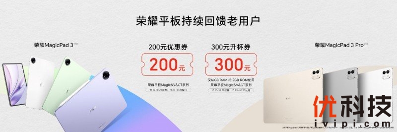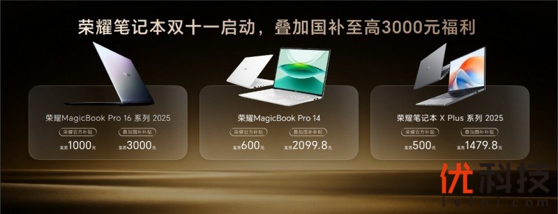 荣耀还公布了一系列持续回馈老用户的福利:购买荣耀MagicPad3 Pro最高配置可享300元升杯券;即刻起,将在多款平板机型中陆续升级MagicOS 10与PC级WPS功能。另外,2021年4月后发布的荣耀PC全系也将获得YOYO助理升级推送,双11期间购买荣耀笔记本,更有叠加国补最高省3000元的优惠福利。