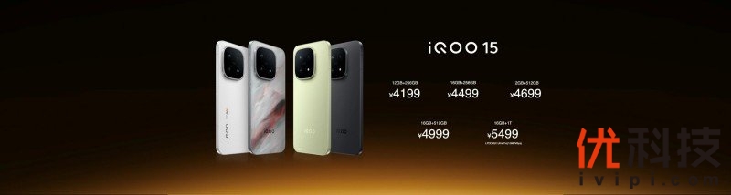 iQOO 15 共有 5 个版本可供选择,12GB+256GB 版本售价 4199 元;16GB+256GB 版本售价 4499 元;12GB+512GB 版本售价 4699 元;16GB+512GB 版本售价 4999 元;16GB+1TB 版本售价 5499 元;iQOO 15(iQOO × 王者荣耀十周年典藏版)售价 5499 元;iQOO 15 将于 10 月 20 日发布会后在 vivo 官网、京东、天猫、拼多多、抖音、快手等渠道正式发售,即刻抢购,限时可享最高 24 期免息;iQOO 线下专卖店、电竞馆、vivo体验店及各大授权门店同步开售;旷野配色将于 10 月 31 日上午 10 点正式开售。