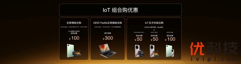 iQOO Pad5e、iQOO WATCH GT 2 和 iQOO TWS 5 的售价分别是 1999 元起、499 元起和 399 元,组合购买更优惠。