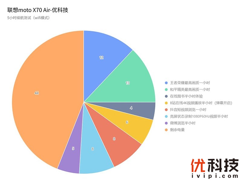 而续航方面联想moto X70 Air也是有着非常大的惊喜,要知道在5.3mm的机身内部塞下4800毫安时大电池本身就相当不容易了,同时在系统全链路优化的加持下,让联想moto X70 Air的续航表现远超同类型产品,实测在经过5小时的重度体验后剩余电量为44%,续航一整天还是可以轻松完成的。