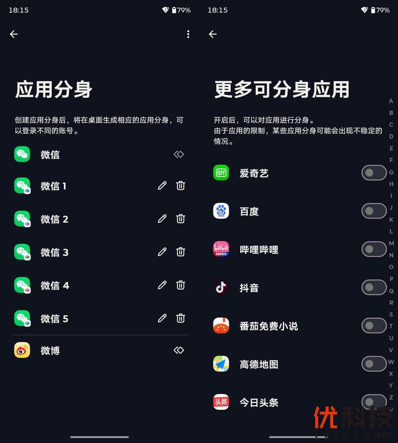 myui 8.0依旧支持应用分身功能,开启分身功能后可以登录不同账号来同时运行,并且系统支持分身的应用也是非常全面。不同于其他品牌的应用分身仅能获取1个分身,而moto手机则是支持最高6个分身,可以说是非常强悍了,另外支持可分身的应用也是非常的丰富。