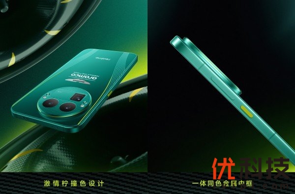 对速度和性能的追求,是真我与阿斯顿·马丁沙特阿美F1®车队的共同信仰。真我GT8 Pro阿斯顿马丁F1限量版以机械之魂,淬赛道锋芒,其设计语言深度复刻了F1赛车的速度与激情。阿斯顿马丁绿+激情柠撞色设计 ,是对车队同款配色方案的致敬。