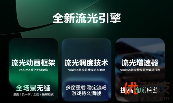 realme UI 7.0搭载了全新的流光引擎,通过流光动画框架、流光调度技术和流光增速器三大核心技术,实现全场景的无缝丝滑流畅体验。
