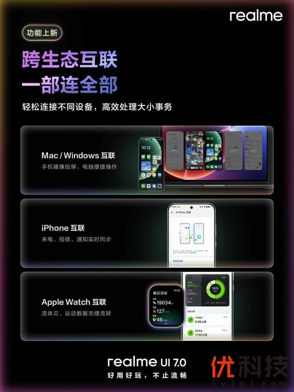 realme UI 7.0在跨设备互联方面实现了重大突破,打破了不同生态之间的壁垒,真正做到"一部连全部"。