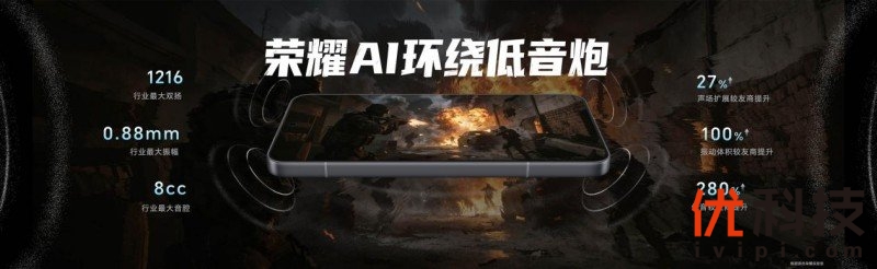 荣耀东风涡轮散热采用后置立体进风口设计,风口不堵路,游戏不降速。整机支持IP68/IP69/IP69K满级防尘防水,全金属核心部件拥有超高可靠性,并提供散热风扇“5年清灰保养”服务。独立背部设计,正面风扇音量低至25dB,全面消除用户对散热风扇“横握挡手”“风道积灰”“噪音影响”的三大使用顾虑。
