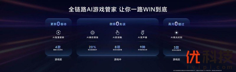 荣耀WIN系列拥有全链路AI游戏管家,带来“AI智慧更新”“AI操控增强”“AI防误触”“AI变声器”“AI高光时刻”等功能,更新0等待、微操0失误、高光0错过,全面提升玩家的电竞体验,一路“WIN”到底。