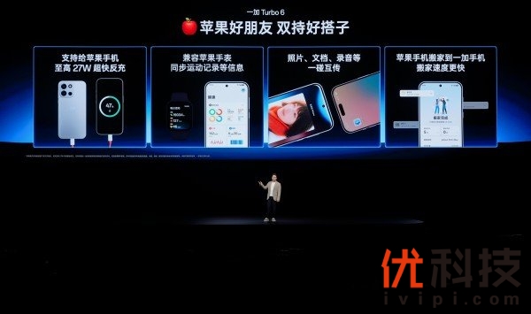 在ColorOS 16加持下,一加 Turbo 6 打破系统边界,实现原生级与iPhone 生态的无缝互联,支持通话共享、通知同步、一碰互传等,让信息随需流转,双机协作更轻松。一加 Turbo 6 完美适配兼容苹果耳机与苹果手表,真正为选择一加 Turbo 6 和iPhone双持的用户,带来「一部设备,连通全部」的跨系统智慧体验。