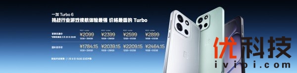 一加 Turbo 6 将于1月9日10:00全渠道正式开售,首销优惠价2099元起,国补到手价1784.15元起;一加 Turbo 6V 将于1月9日10:00全渠道正式开售,首销优惠价1699元起,国补到手价1444.15元起。