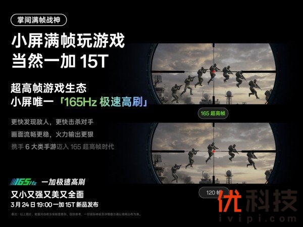 基于强大的软硬件调校能力与广泛的生态合作,一加 15T 拥有小屏独一档的 165 帧超高帧游戏生态体验,引领小屏手机进入 165 超高帧时代。一加 15T 支持《英雄联盟手游》、《三角洲行动》等主流游戏原生 165 帧超高帧游戏体验,并覆盖 FPS、MOBA、格斗等六大类热门手游。同时,一加 15T 还是首台支持《王者荣耀》144Hz + 极致画质同开的小屏旗舰,还能实现连续 3 小时《和平精英》165 帧稳如直线、《原神》120 帧 + 1.5K 超帧超画 1 小时稳定同开,无愧为小屏党的掌间满帧战神。