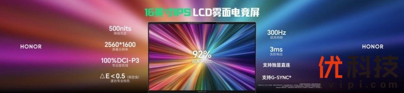 荣耀WIN游戏本 H9搭载16英寸LCD雾面电竞显示屏,拥有500nits亮度与100%DCI-P3专业级色域。在游戏适配性上,屏幕刷新率达到行业第一梯队的300Hz,无论是FPS类射击游戏,还是其他竞技网游,都能带来更流畅、更跟手的视觉体验,杜绝画面拖影。