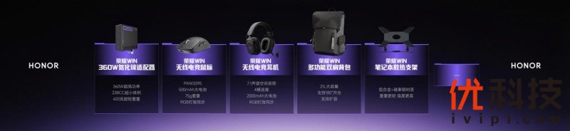配套生态方面,荣耀同步推出荣耀WIN 360W氮化镓适配器,重量仅420g,是业界最便携、重量最轻的同功率适配器,还同时兼容其他品牌的游戏本。同时,荣耀WIN无线电竞鼠标、荣耀WIN无线电竞耳机、荣耀WIN多功能双肩背包、荣耀WIN笔记本散热支架等全场景产品同步亮相,打造一站式电竞装备解决方案。