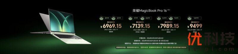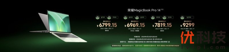 荣耀MagicBook Pro系列2026拥有星辰灰、月光白、青瓷绿三款配色,并提供了多种配置选择,满足用户的不同需求。荣耀MagicBook Pro 14 2026国补到手价6799.15元起,荣耀MagicBook Pro 16 2026国补到手价6969.15元起,两款新品均已在全渠道开售,想抢先体验的用户可以第一时间入手。