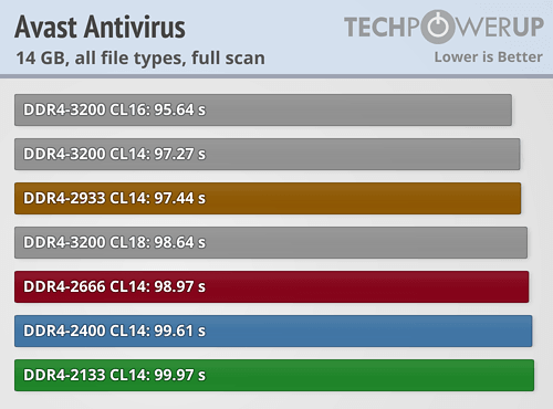 外媒TechPowerUp就此进行了专门的深入测试,处理器采用旗舰型号Ryzen 7 1800X,内存是号称专门优化的芝奇Flare X,两条8GB组成双通道(条子真不错高频也能做到CL14)。