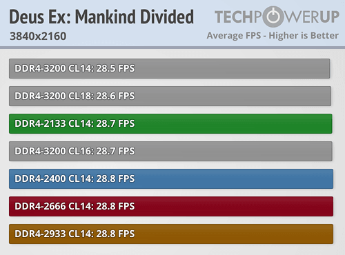 4K分辨率下差别仅仅0.8%,完全可以忽略不计,因为此时考验的主要是GPU显卡,内存关系不大。