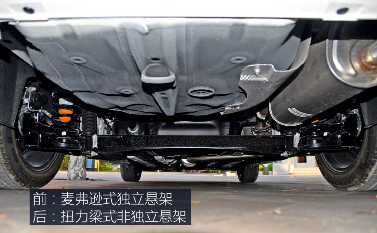 底盘系统为前悬架为麦弗逊式独立悬架,后悬架为扭力梁式非独立悬架,同级别有不少用多连杆后悬架的,不过考虑到北汽昌河A6的价格,用扭力梁式后悬架也正常。