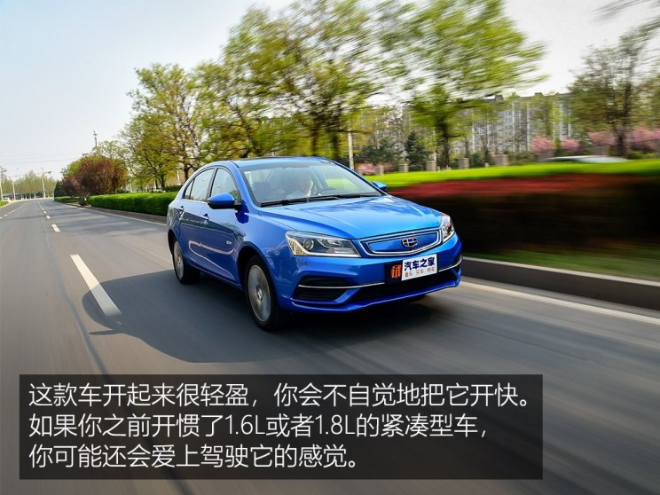 这款车开起来表现得很轻盈,你会不自觉地把它开快。如果你之前开惯了1.6L或者1.8L的紧凑型车,你可能还会爱上驾驶它的感觉,因为它的加速真的很快,比普通的汽油版帝豪快多了。