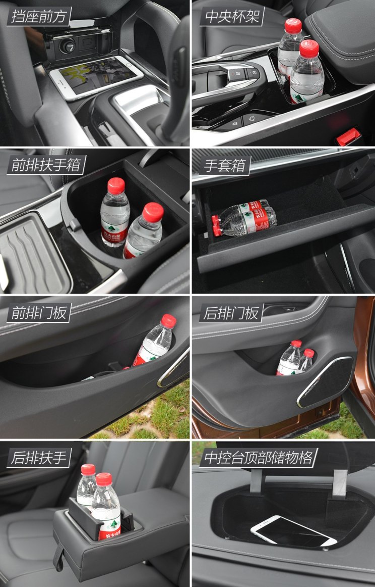 储物空间该有的基本都有了,正常水平表现。挡座前方储物槽较浅,但内部带有防滑垫,适合放手机,拿放都比较顺手。中控台顶部储物格的容积还不错,中央杯架如果不需要时,可以手动将盖板盖上,形成一个简单的储物槽。