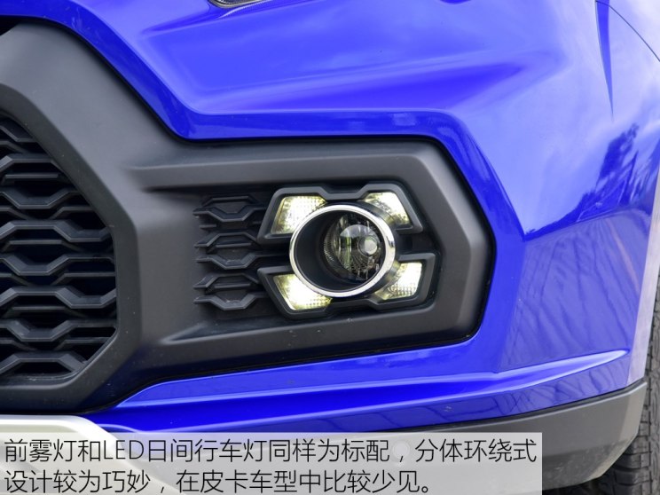 在悬架结构方面,它采用的是前双横臂式独立悬架,后钢板弹簧,弹性元件为5片变截面钢板,这也是目前这个级别皮卡车型中常见的悬架结构形式。