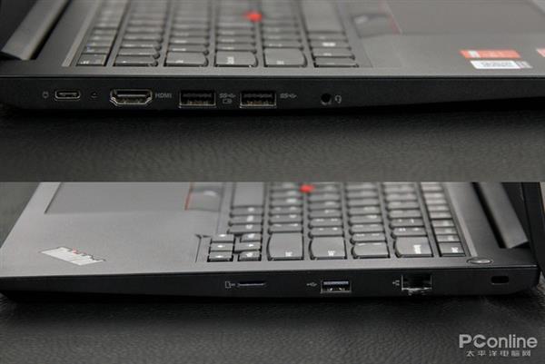 在接口方面,ThinkPad E485设置了2×USB 3.0接口,1×USB 2.0接口,1×HDMI接口,RJ45网口,以及Micro SD读卡器,可以满足日常基本的扩展需求。